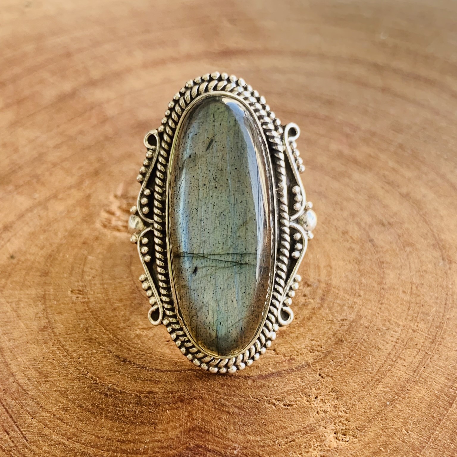 Lindo anel de prata 925 com pedra natural grande em Labradorita, rico em detalhes esse anel vai fazer você se apaixonar pela sua beleza e encanto.