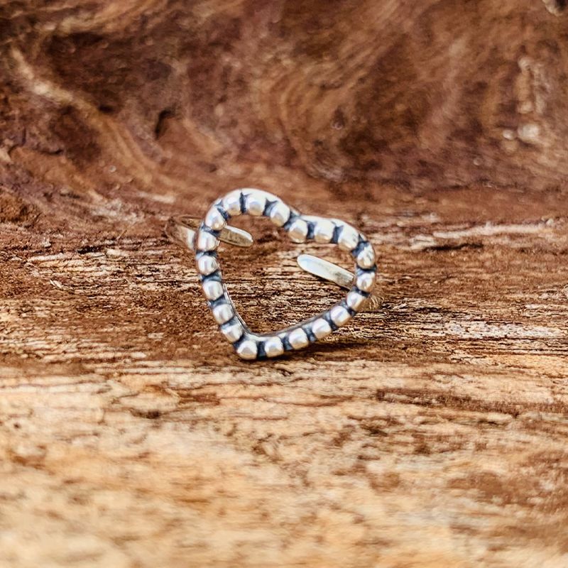 Anel falange coração envelhecido detalhes em bolinhas ajustável, puro charme!