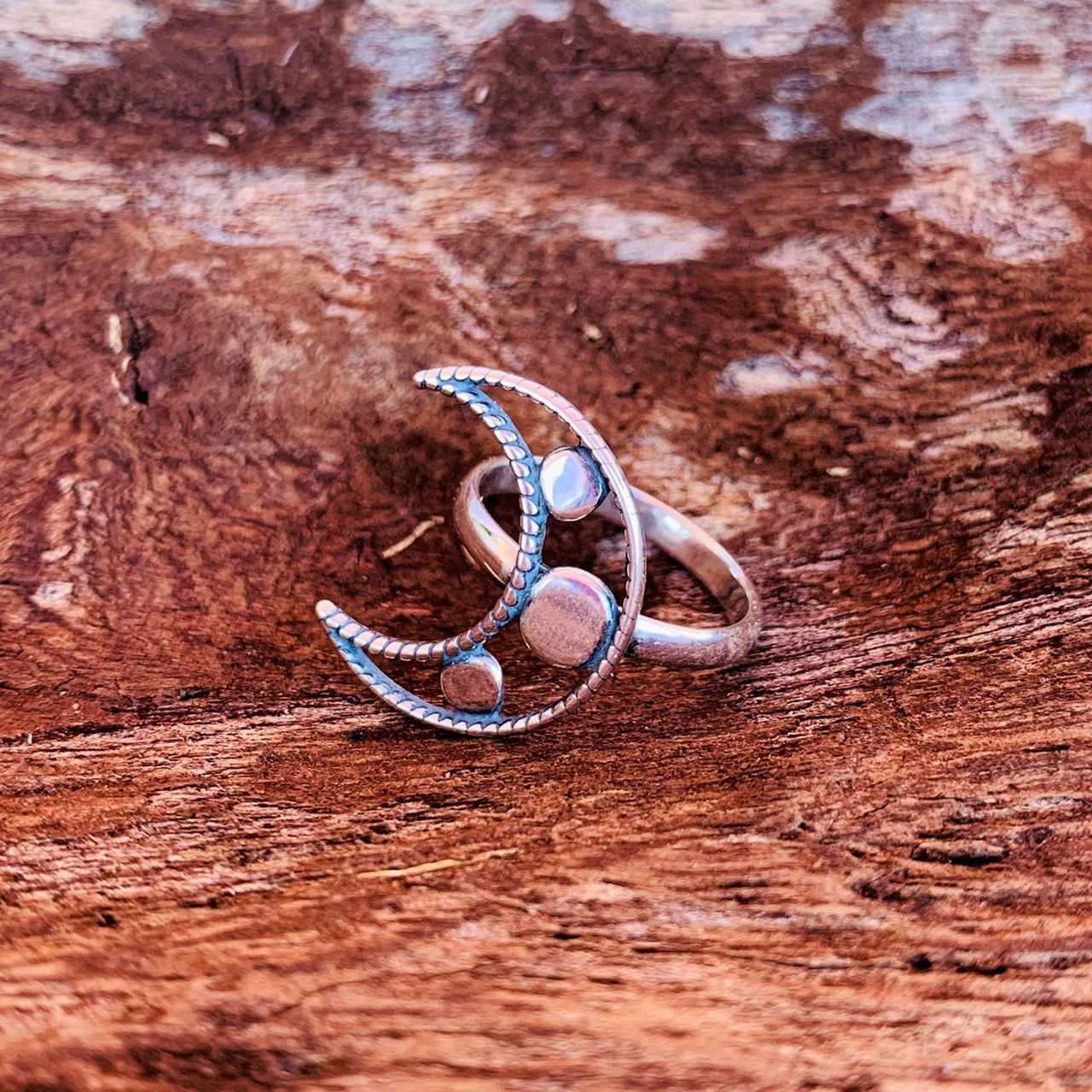 Anel lua vazada prata envelhecida. A Lua é um símbolo quase universal de feminilidade, passividade, fertilidade, periodicidade e renovação.
