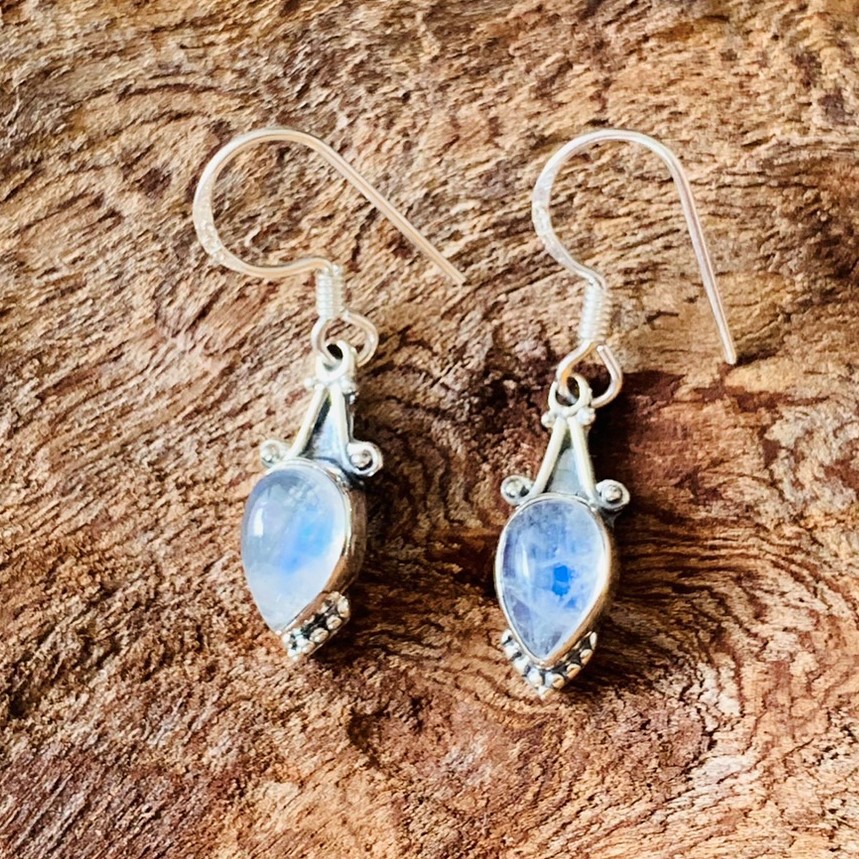 Brinco Gancho detalhes envelhecidos Bali com a pedra da lua.