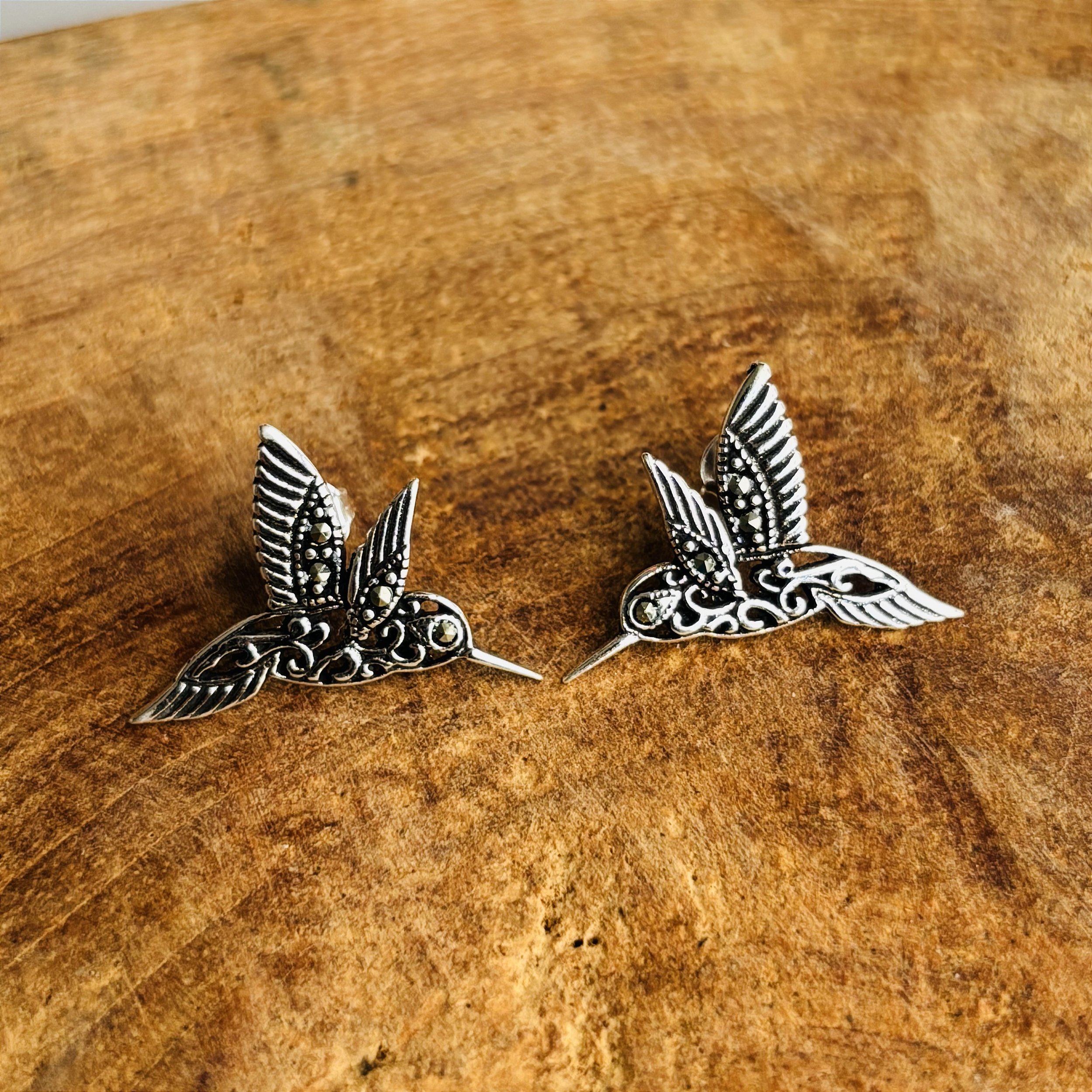Brinco encantador de Beija Flor Balinês com pedras Marcassitas vai fazer você se apaixonar!